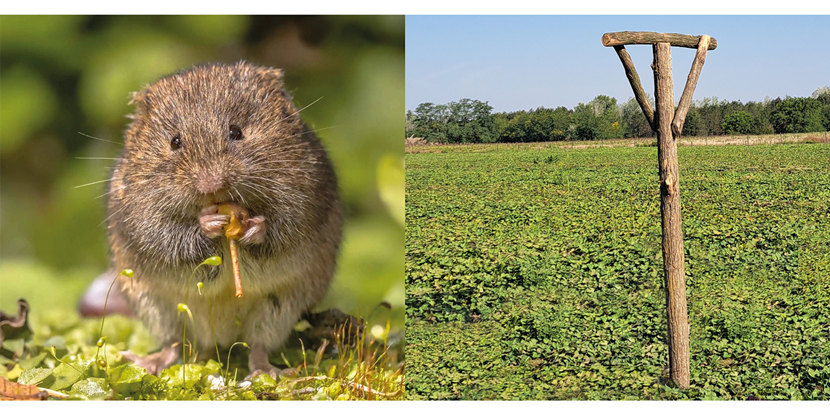 T-alakú ülőfák kihelyezésével a mezei pockokra vadászó ragadozó madarak munkáját könnyíthetjük meg.