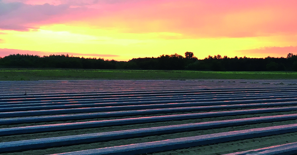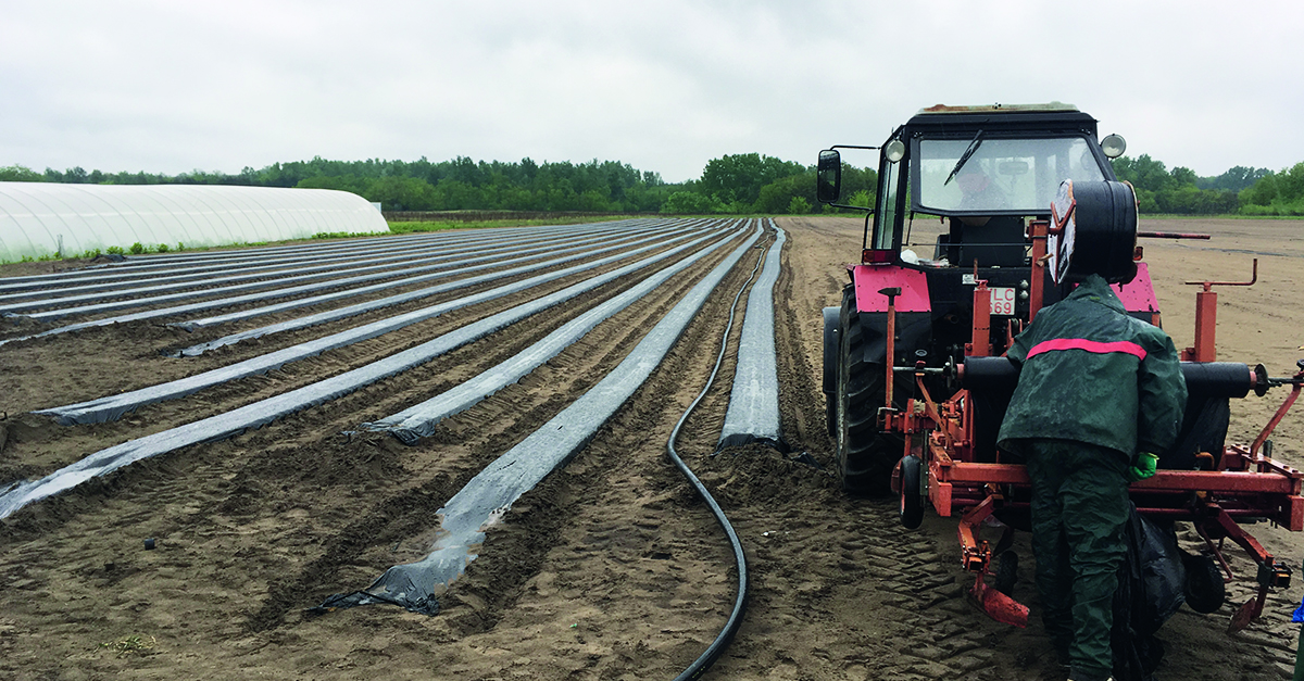 Ültetésre előkészített, fekete fóliával takart bakhátak