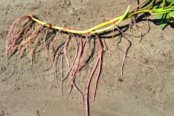 Az összes fajtánk közül az indák felszaggatása különösen a Bayou Belle-nél fontos, mert ennek a variánsnak az indái nagyon hajlamosak a legyökeresedésre, elvéve ezzel az energiát a növény tövénél lévő gumók fejlődésétől.