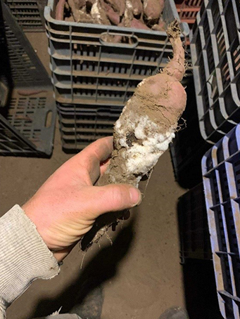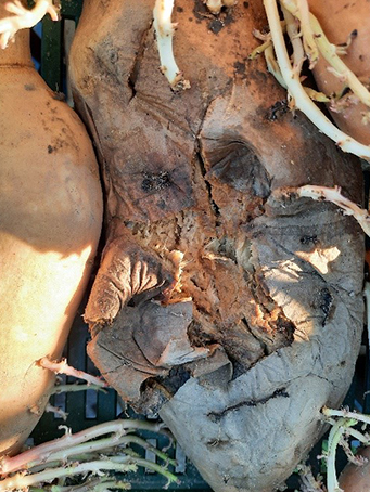 2021-ben betakarítás során már több termelő jelzett egy betegséget, amelyet az édesburgonya gumó héján észleltek. Magyar neve még nem ismert angolul scurf-nak hívják, amely egy gomba betegség és csak édesburgonyában okoz problémát.