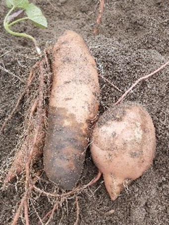 Ideális termesztési körülmények között a járulékos gyökerek raktározó gyökerekké alakulnak, kedvezőtlen környezeti feltételek esetén, ugyanazon járulékos gyökerek röviddel az ültetés után a ceruzagyökerek képződéséhez vezet. A túlöntözés és a száraz talajba való ültetés is károsan hat a gyökérfejlődésre. Az ültetés után nagyon fontos az iszapoló öntözés az édesburgonya dugványoknak. A hideg talajba való ültetés károsan hat a raktározó gyökerek kialakulására. Az ültetés utáni 2 hét fogja eldönteni, hogy a járulékos gyökérből ceruza vagy raktározó gyökér lesz.