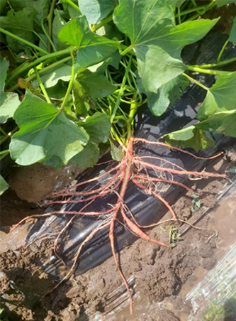 A folyamatos monitoringozás során a talaj vízellátását is szükséges ellenőriznünk. Ebben az időszakban az édesburgonya indái már teljesen befutják a talajfelszínt, ezáltal kevesebb a párolgási veszteség. Az ideális talajnedvességet a következő módon állapíthatjuk meg: