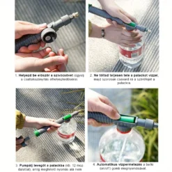 • Hatékony nyomásképzés: A beépített pumpás mechanizmussal gyorsan és könnyen hozhatsz létre nagy nyomást a palackban, így a permetezés folyamatos és egyenletes lesz.